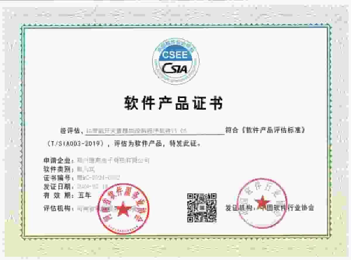 软件产品证书-4G智能开关量模块控制程序软件V1.08