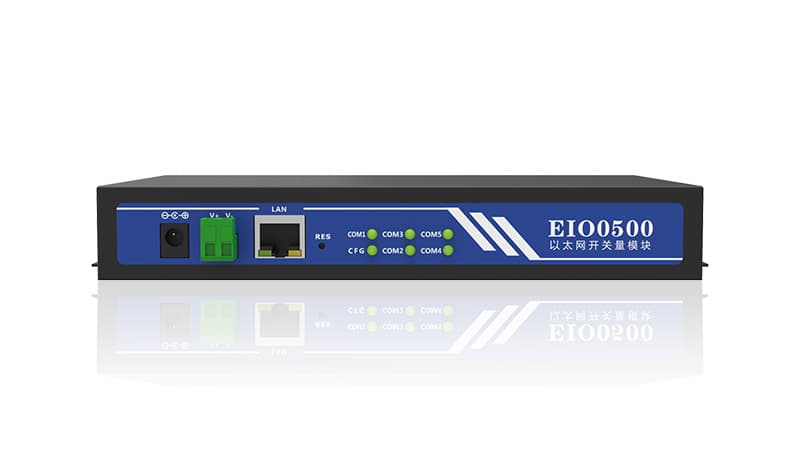 我公司研发的EIO0500采集控制模块,支持5路继电器,主要用来输出I/O控制信号,同时还集合了串口服务器和Modbus网关的功能