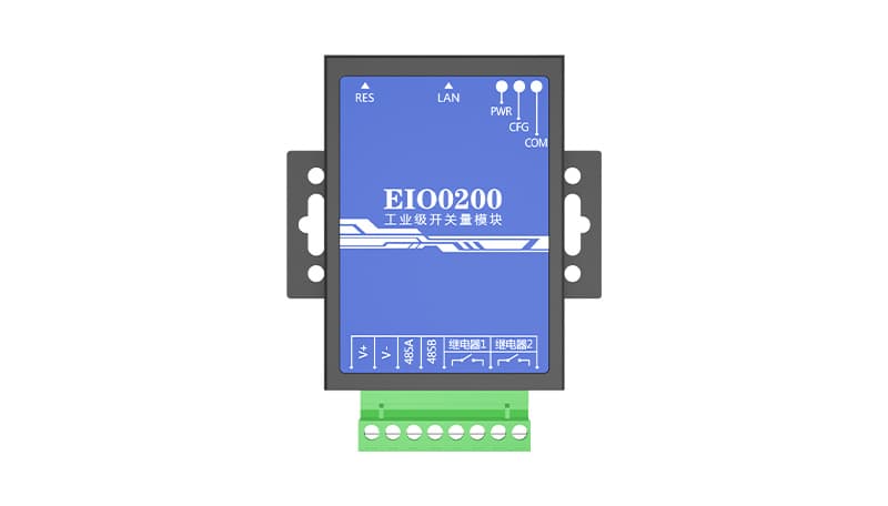 我公司研发的EIO0402采集控制模块,支持2路I/O、2路继电器输出,主要用来采集现场的I/O输入信号,并输出I/O控制信号,同时还集合了串口服务器和Modbus网关的功能