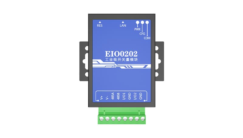 我公司研发的EIO0202采集控制模块,支持2路I/O通道,主要用来采集现场的I/O输入信号,并输出I/O控制信号,同时还集合了串口服务器和Modbus网关的功能