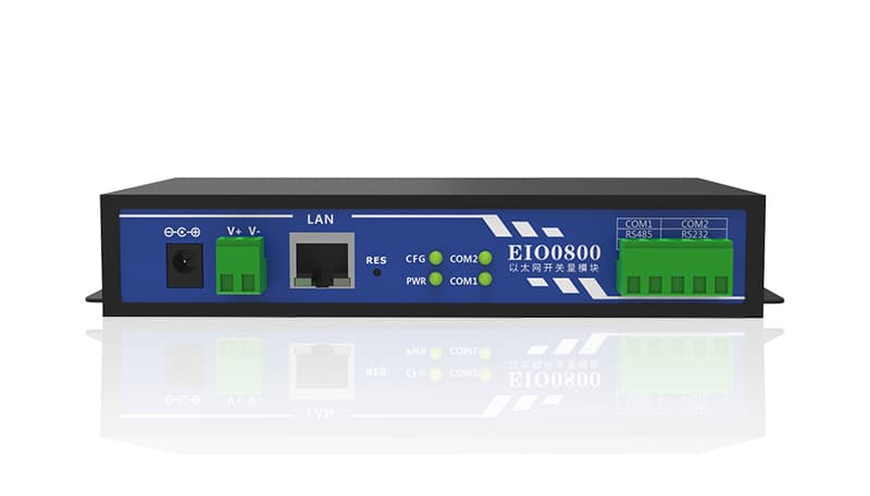 我公司研发的EIO0800采集控制模块,支持8路继电器,主要用来输出I/O控制信号,同时还集合了串口服务器和Modbus网关的功能。产品完全按照工业级标准进行设计,功能强大、抗干扰能力强、防雷击及浪涌冲击,宽电压输入,能够在-40℃~80℃范围内长期稳定工作。
